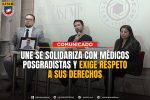 UNE se solidariza con médicos posgradistas y exige respeto a sus derechos