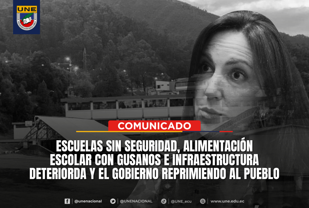 A esto se suma que en varios territorios denominados calientes no están presentes ni policias, ni militares porque el Gobierno prefiere reprimir al pueblo que lucha frente al paquetazo y no a la delincuencia, mientras la ministra de Educación permanece en silencio e indiferente. Frente a este abandono, desde la UNE reafirmamos que es momento de movilizarnos. Exigimos que se destine un presupuesto adecuado para la educación, que se declare al sistema educativo en emergencia y que se atiendan de inmediato las necesidades urgentes de toda la comunidad educativa.