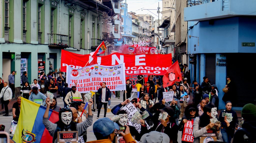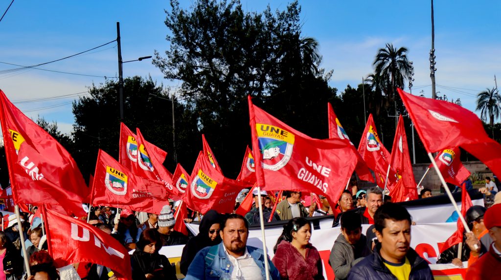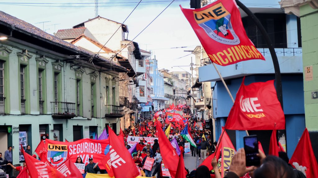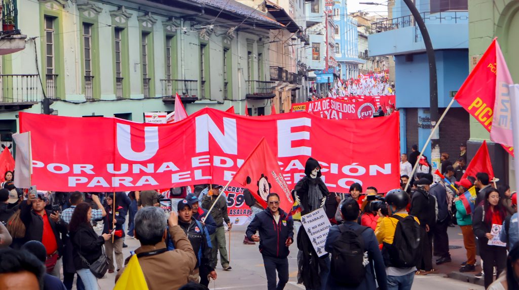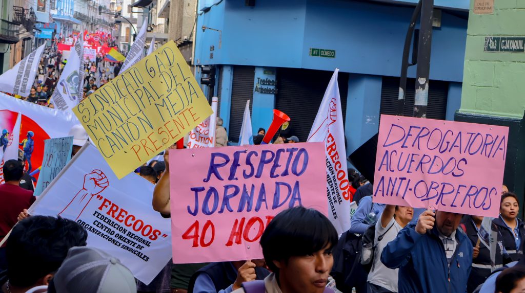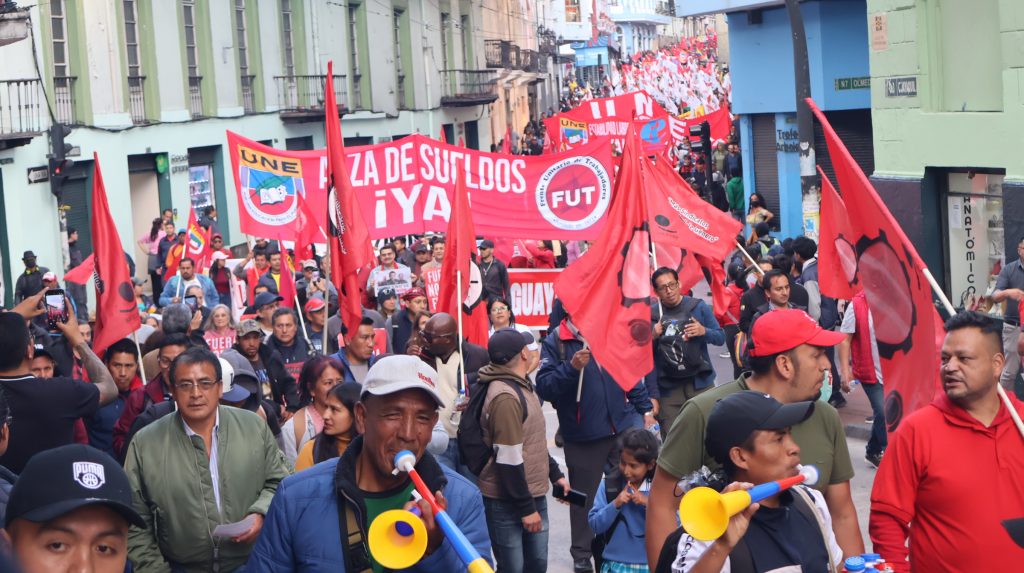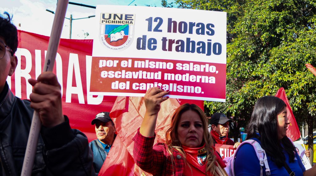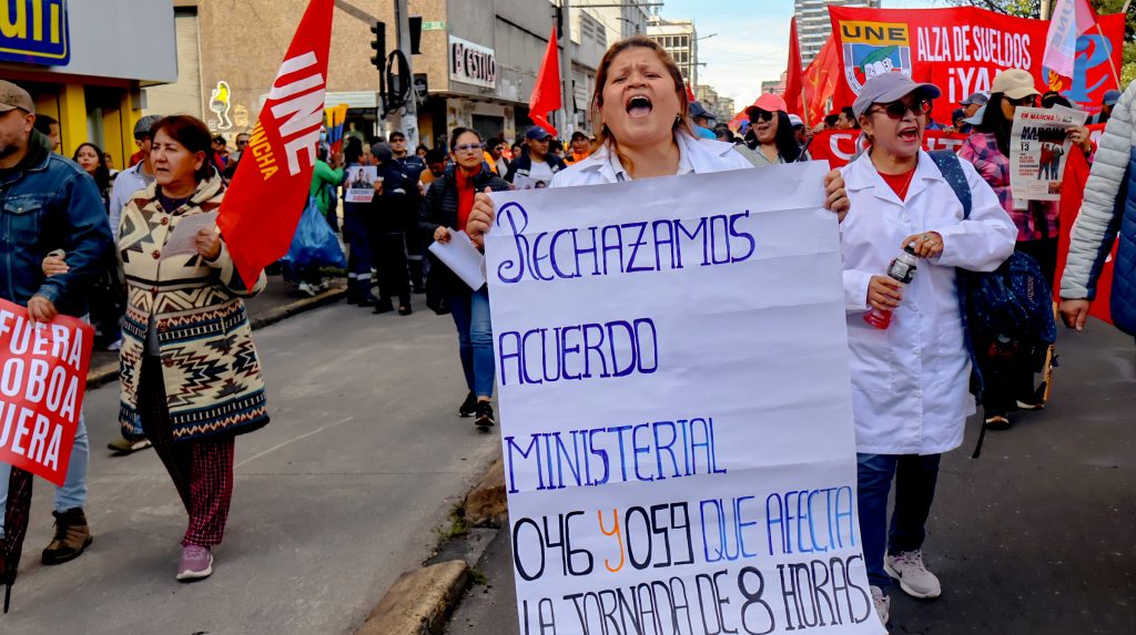 Marchamos, además, para rechazar decisiones que amenazan los derechos laborales y el desarrollo social del país. La reforma al Código Orgánico de Organización Territorial, Autonomía y Descentralización busca recortar recursos destinados a programas sociales, educación municipal y servicios comunitarios fundamentales para la vida cotidiana de miles de ciudadanos. A esto se suma el Acuerdo Ministerial MDT-2026-059, que pretende imponer jornadas de hasta 12 horas eliminando, en la práctica, el pago de horas extras, precarizando el trabajo y empujando al país décadas atrás en materia de derechos laborales.