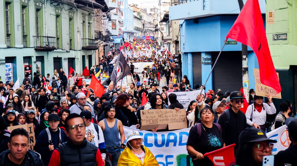 Aquí la galería fotográfica de la masiva marcha realizada el pasado 13 de marzo de 2026 junto a más de 50 organizaciones sociales. Nos movilizamos porque el país no puede seguir viviendo bajo la sombra del miedo y la precariedad. Mientras el Gobierno anuncia planes de seguridad que en la práctica no existen, el Ecuador ha sido empujado a una realidad insoportable: el país más violento de América Latina, cerrando el 2025 con más de 10.000 homicidios y la tasa de muertes violentas más alta de su historia. Ante esta tragedia nacional, junto a múltiples sectores populares, levantamos la voz con dignidad y firmeza para exigir seguridad real, políticas públicas responsables y un Estado que garantice la vida y la tranquilidad de su pueblo.